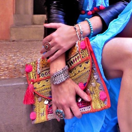 Fashion blogger Ibizabohogirl wearing feather bracelets