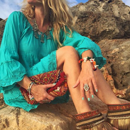 Fashion blogger Ibizabohogirl wearing feather bracelets