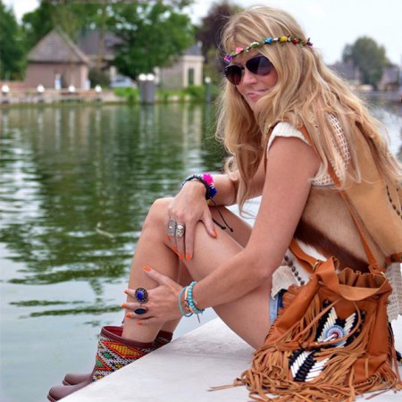 Fashion blogger Ibizabohogirl wearing feather bracelets
