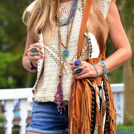 Fashion blogger Ibizabohogirl wearing feather bracelets